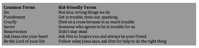 As adults we’re not always great at communicating in “kid-speak.” We’ve been grown-ups for so long we forget what kids do and don’t understand. Here’s some more helpful ways to communicate the Gospel to kids on their level: